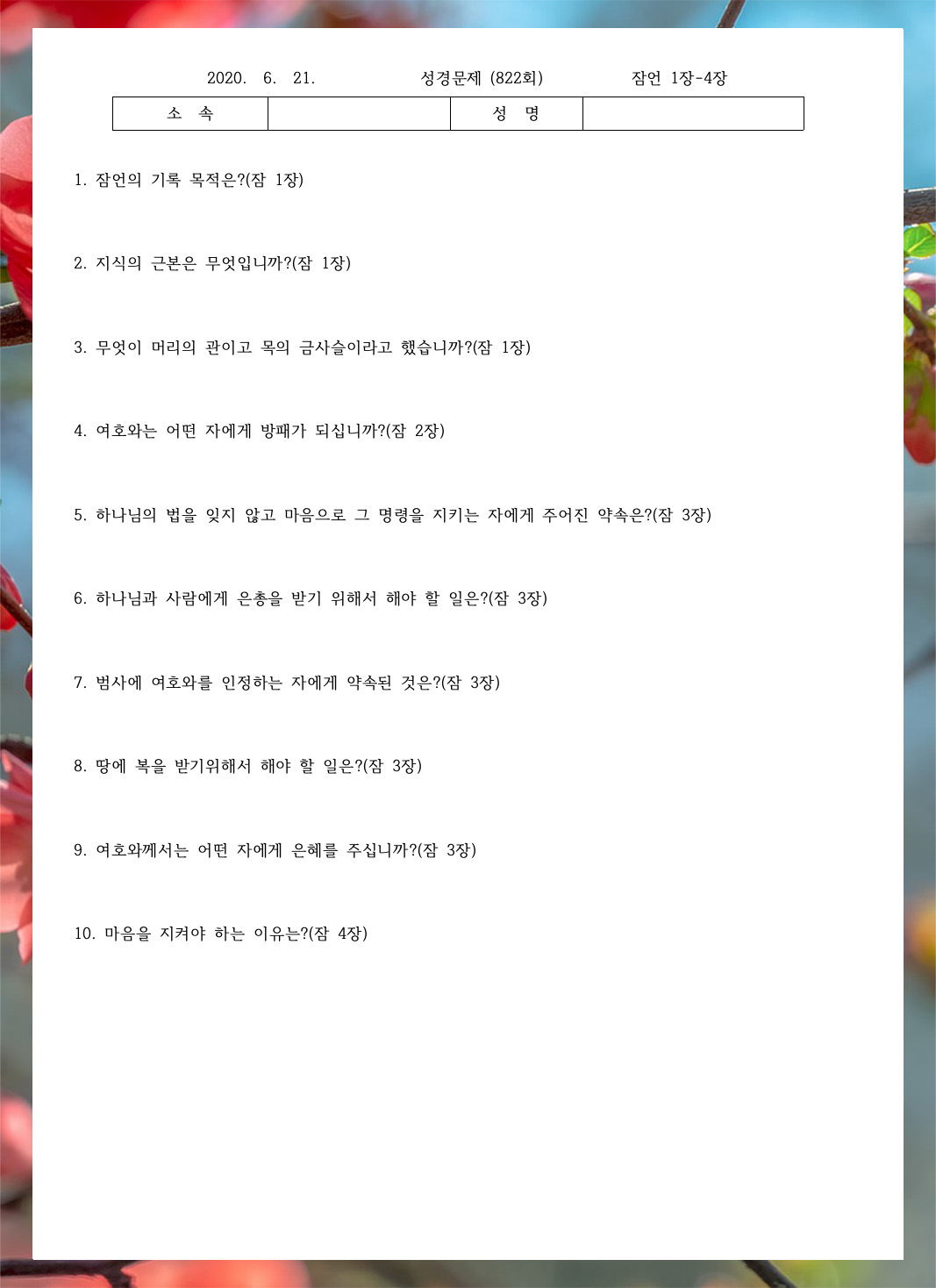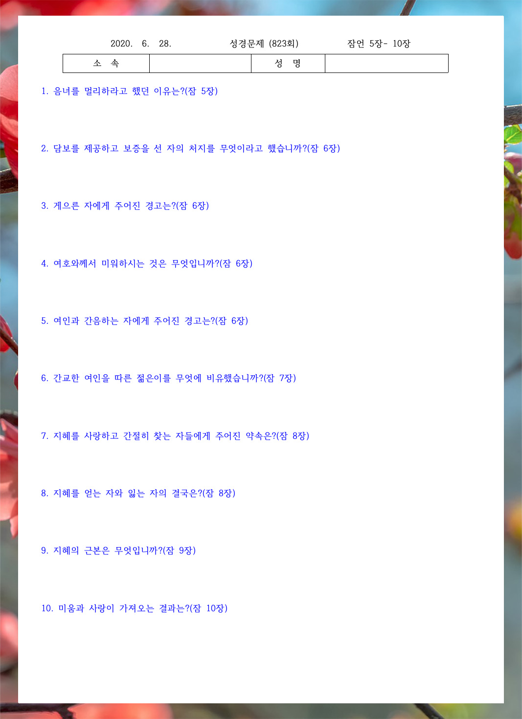 ¼º°æ¹®Á¦ 823ȸ(6¿ù 28ÀÏ)