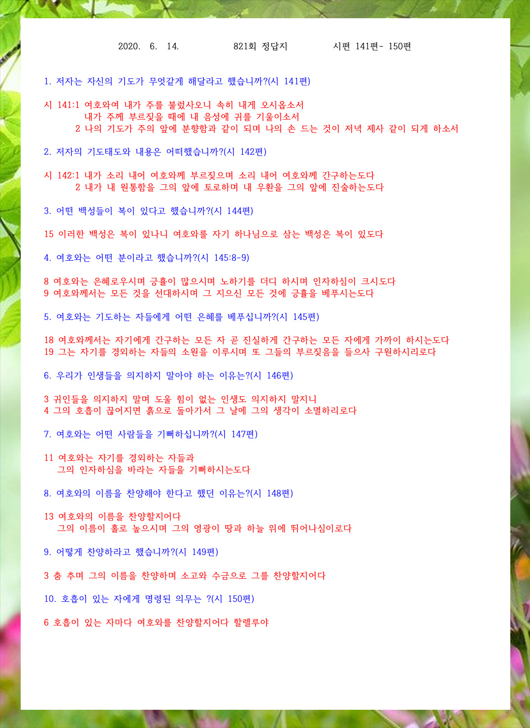 ¼º°æ¹®Á¦ 822ȸ(6¿ù 21ÀÏ)
