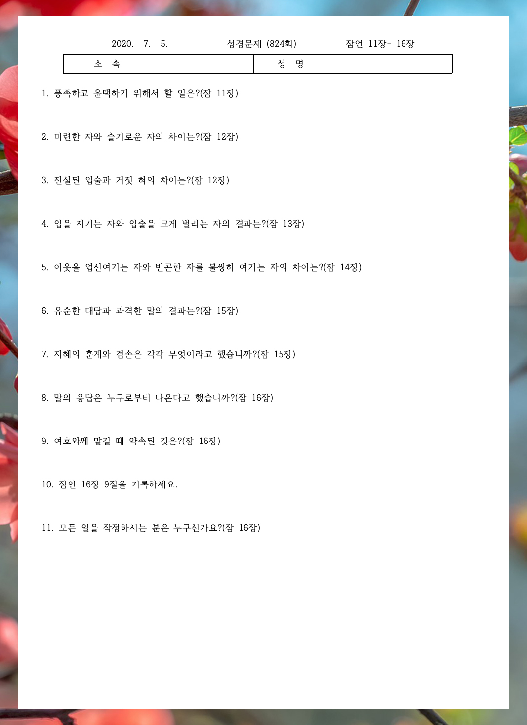 ¼º°æ¹®Á¦ 824ȸ(7¿ù 5ÀÏ)