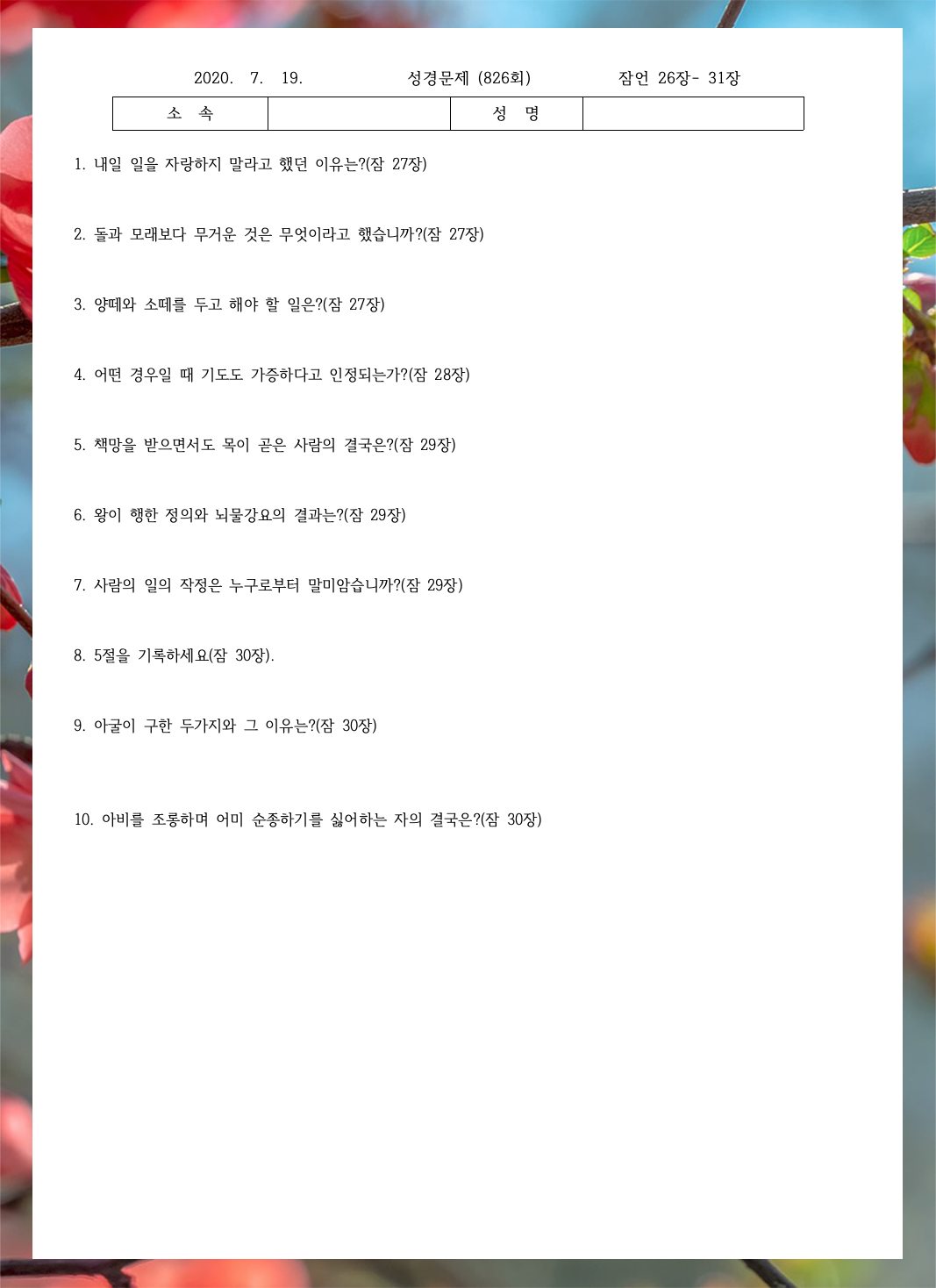 ¼º°æ¹®Á¦ 826ȸ(7¿ù 19ÀÏ)