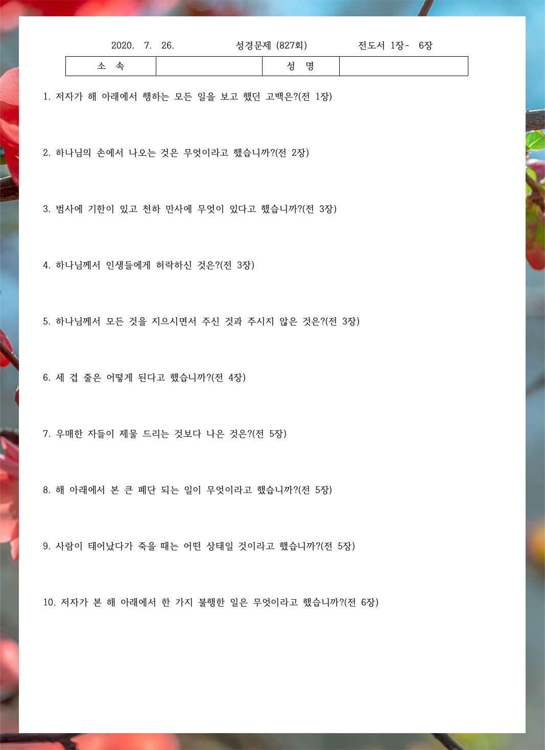 ¼º°æ¹®Á¦ 827ȸ(7¿ù 26ÀÏ)