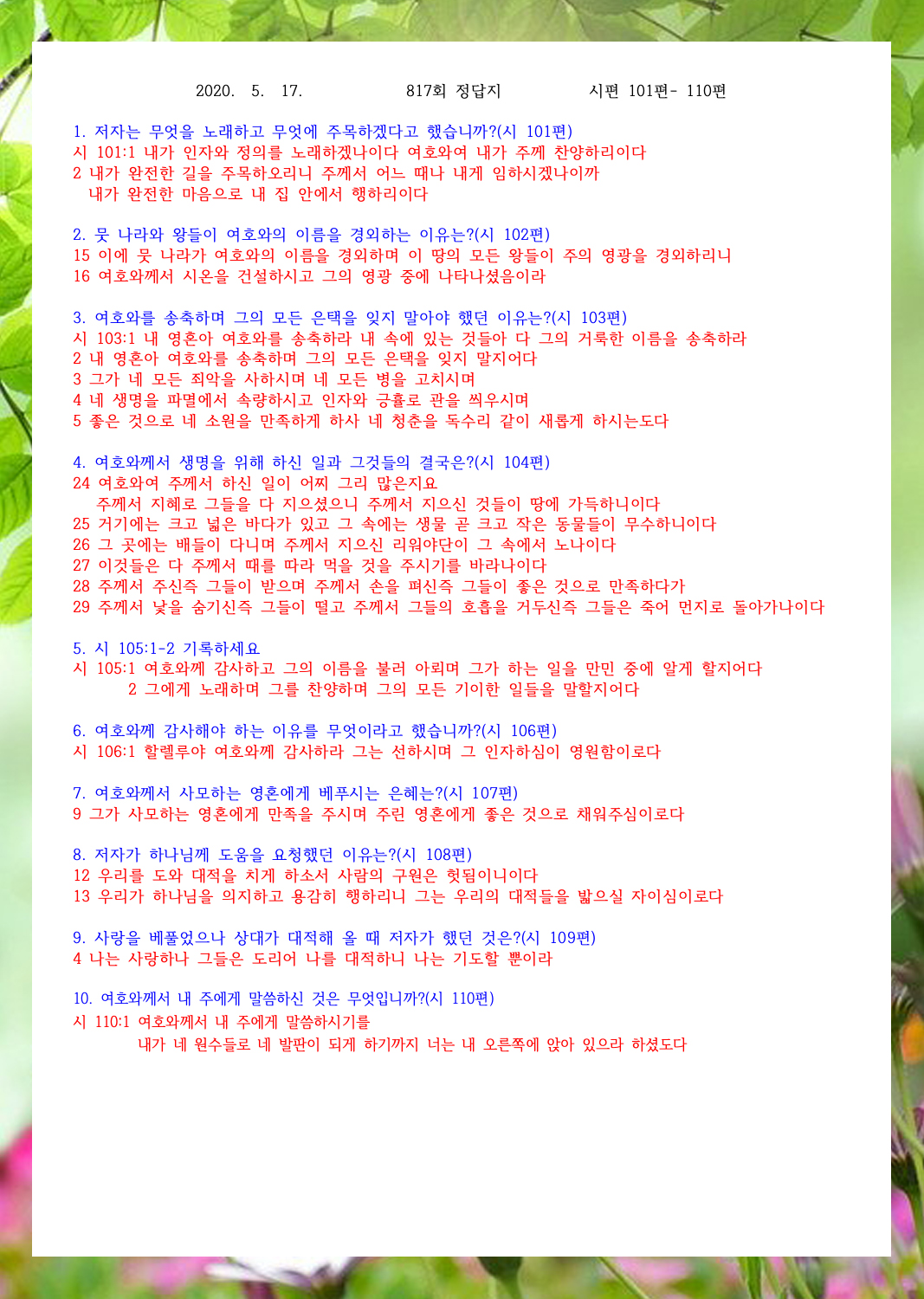¼º°æ¹®Á¦ 817ȸ(5¿ù 17ÀÏ)