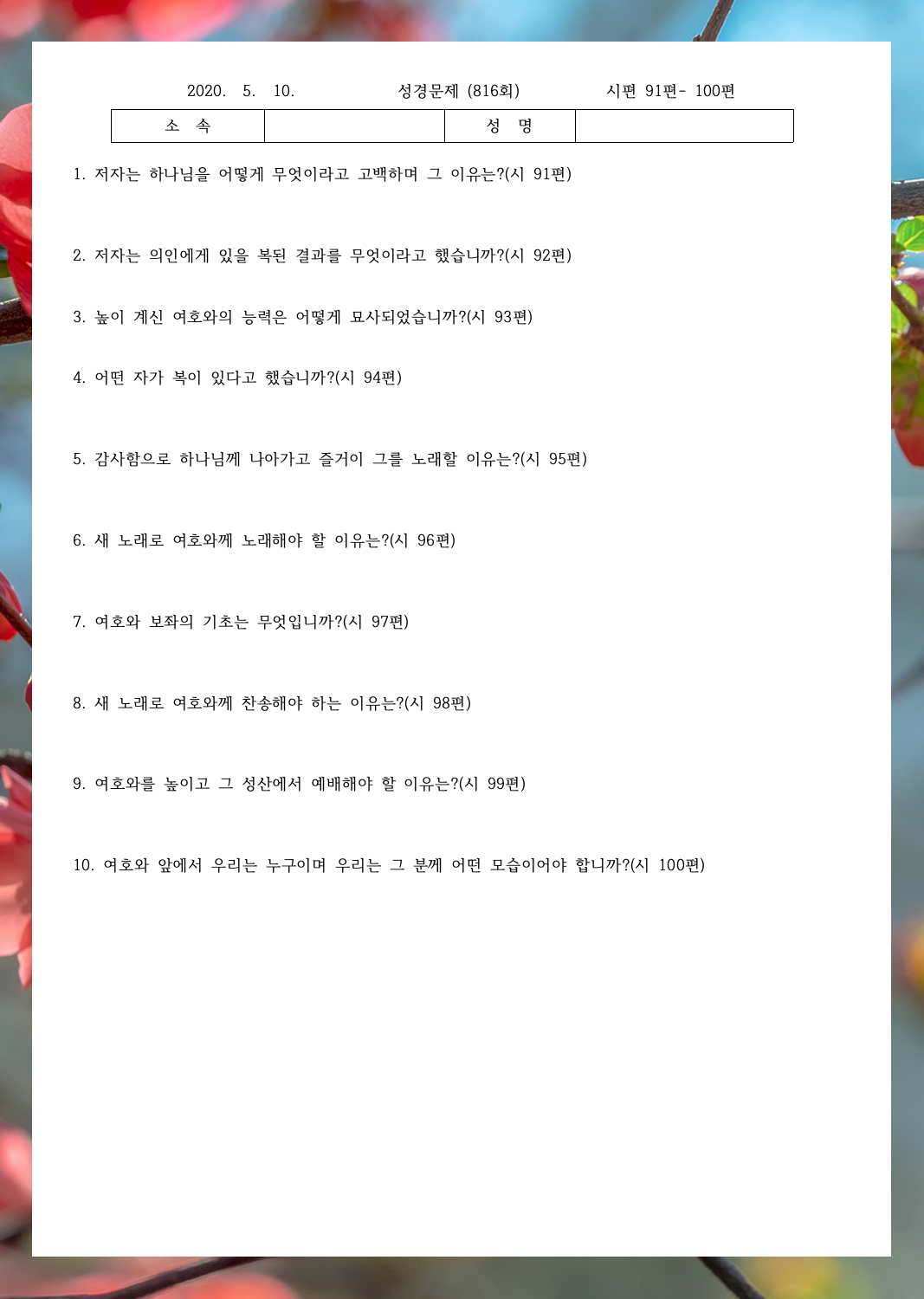 ¼º°æ¹®Á¦ 816ȸ(5¿ù 10ÀÏ)