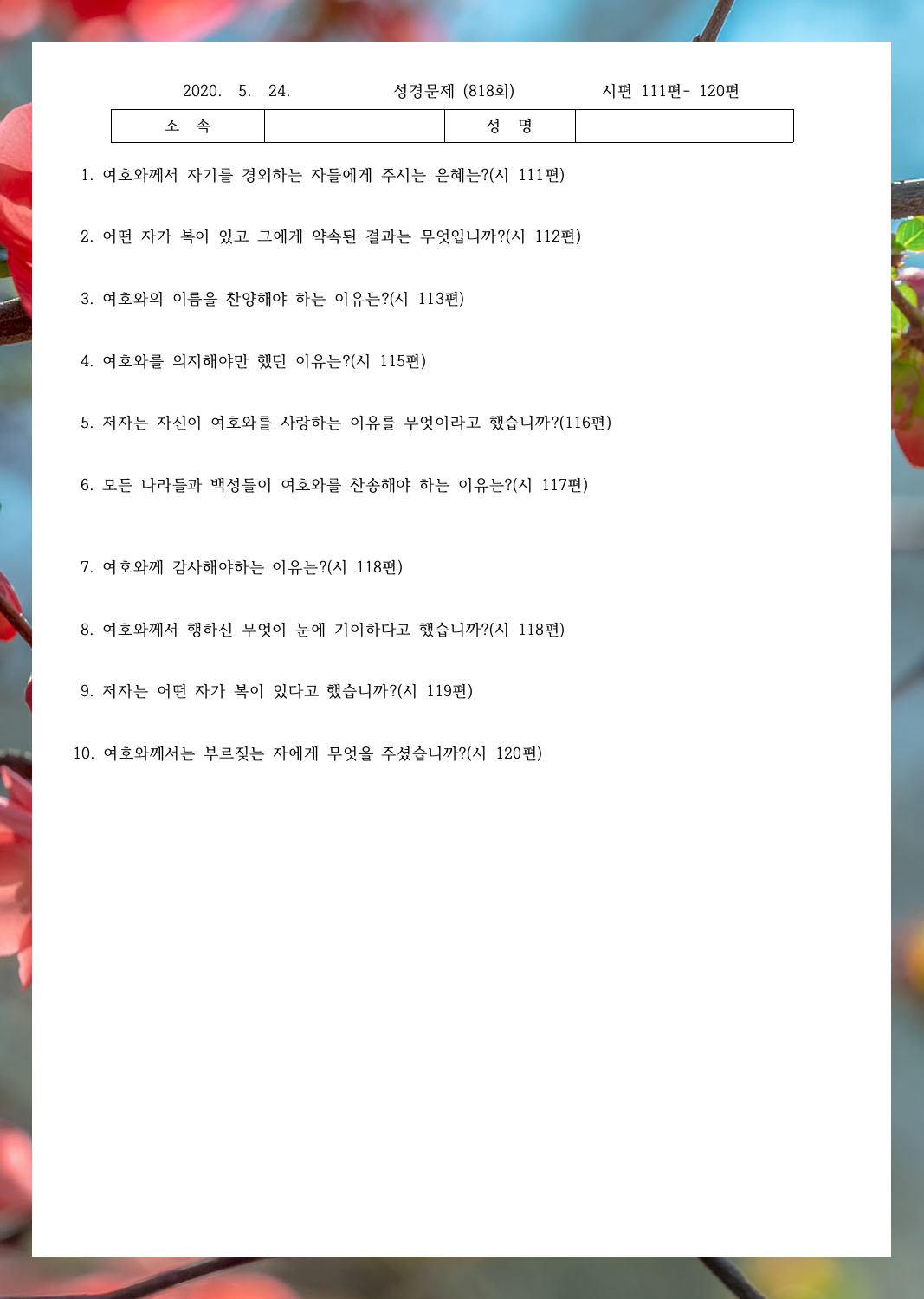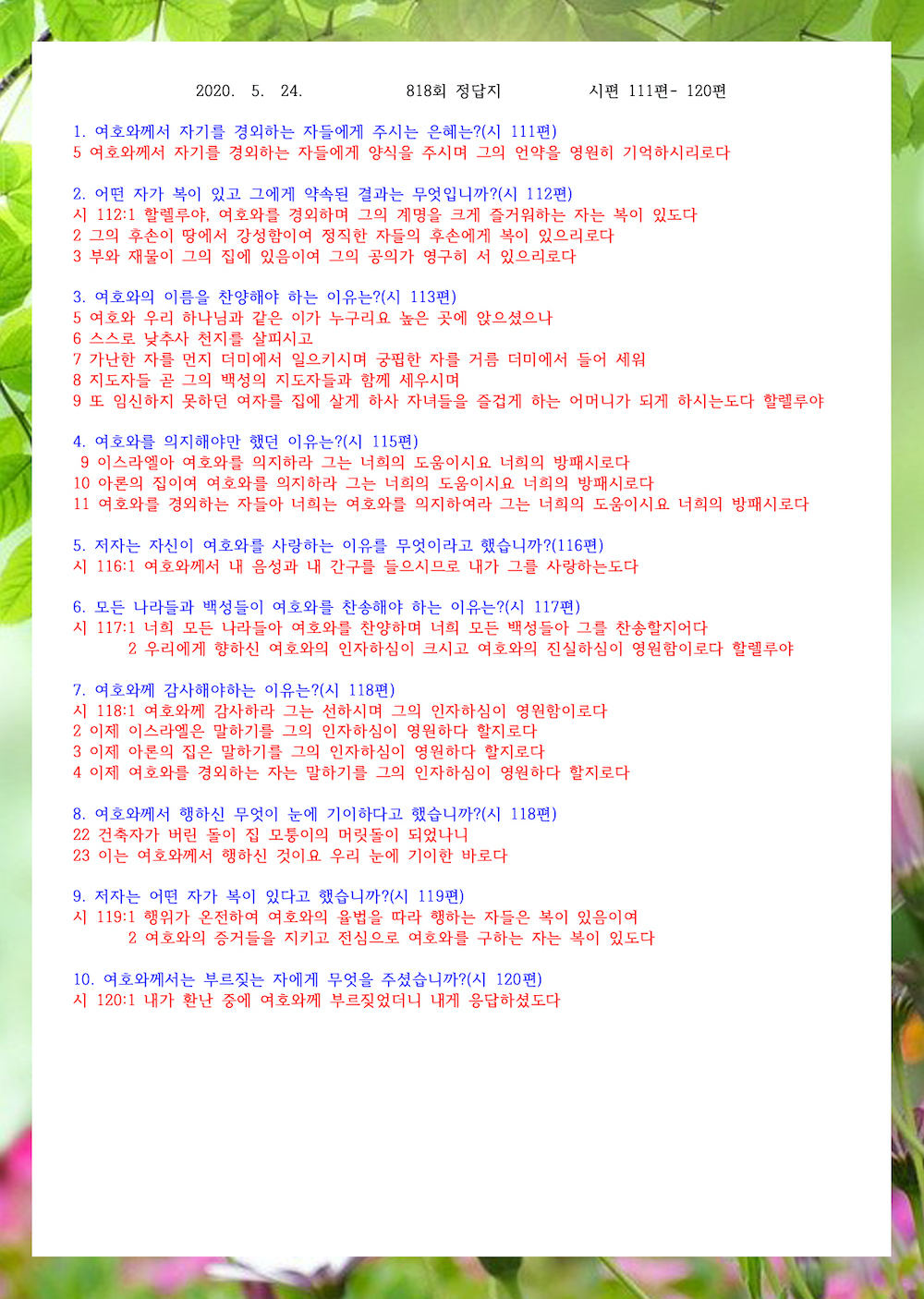 ¼º°æ¹®Á¦ 818ȸ(5¿ù 24ÀÏ)