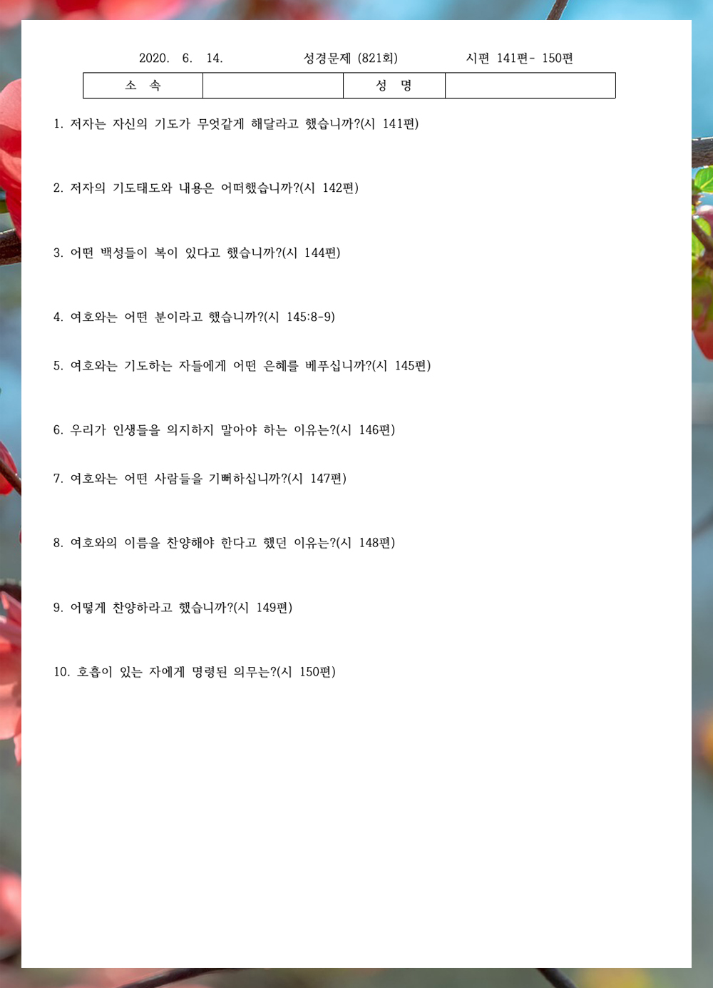 ¼º°æ¹®Á¦ 821ȸ(6¿ù 14ÀÏ)