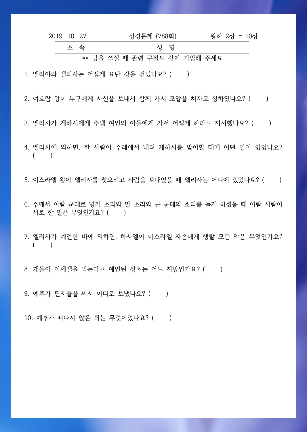 ¼º°æ¹®Á¦ 788ȸ(10¿ù 27ÀÏ)