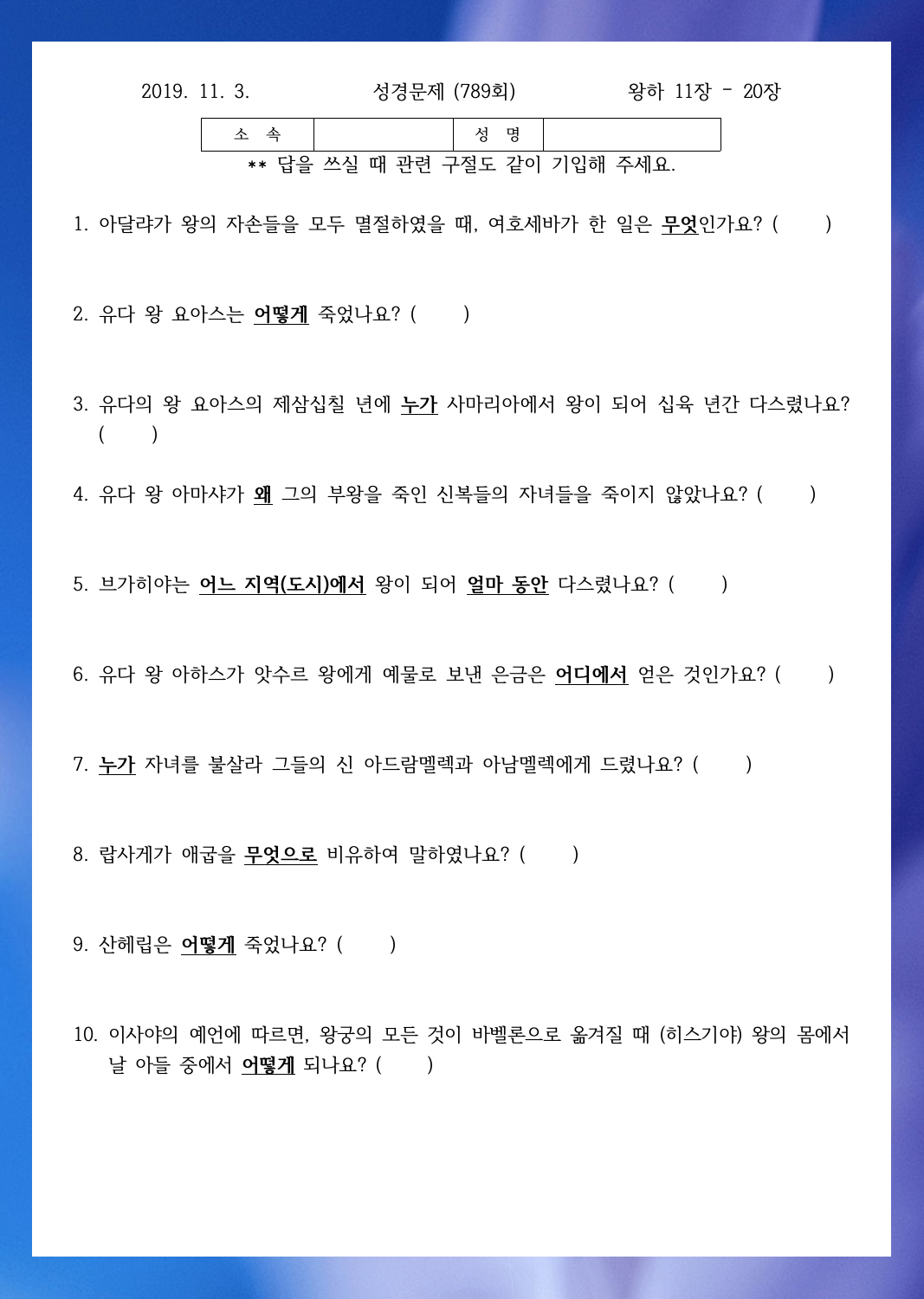 ¼º°æ¹®Á¦ 789ȸ(11¿ù 3ÀÏ)