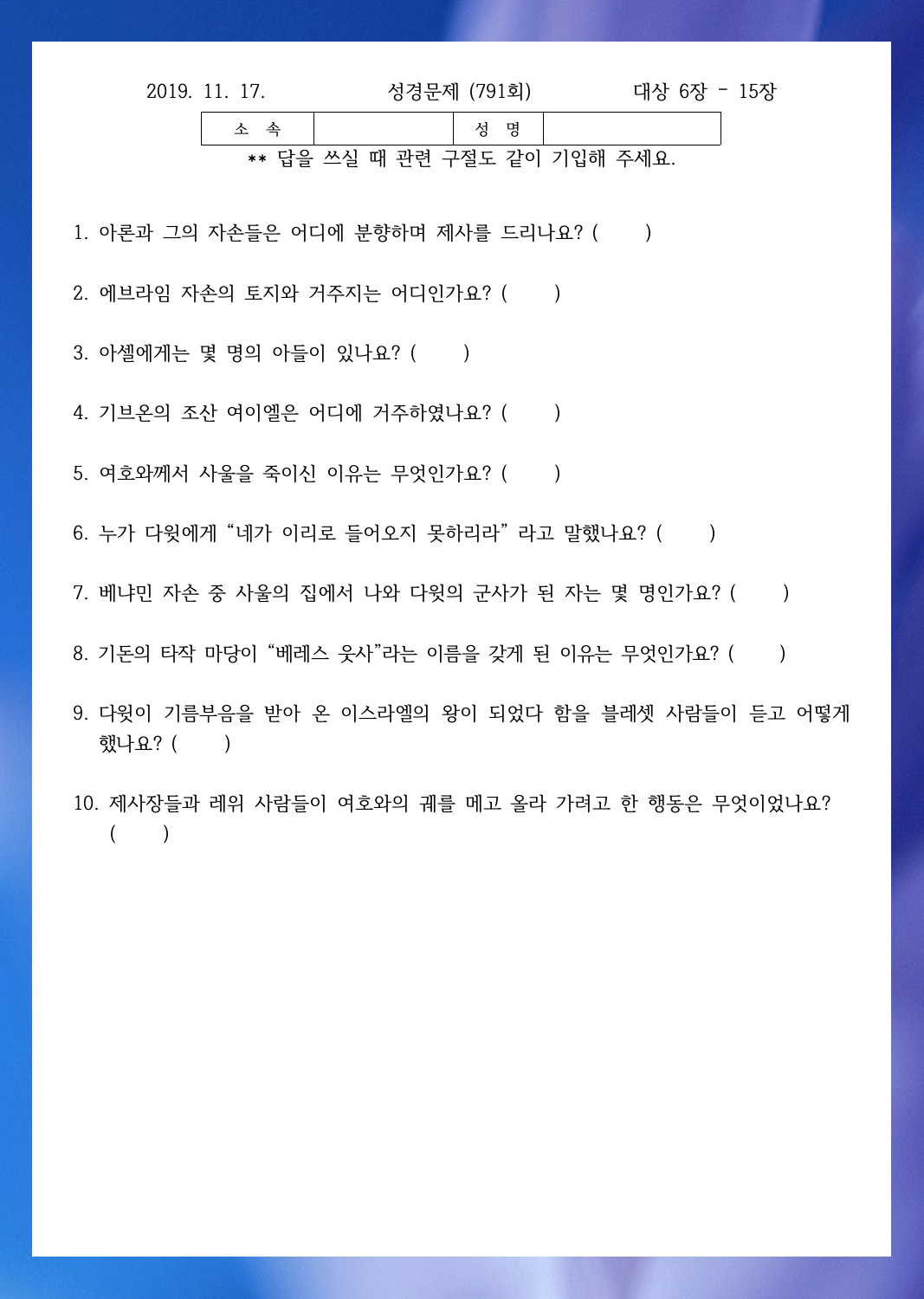 ¼º°æ¹®Á¦ 790ȸ(11¿ù 10ÀÏ)