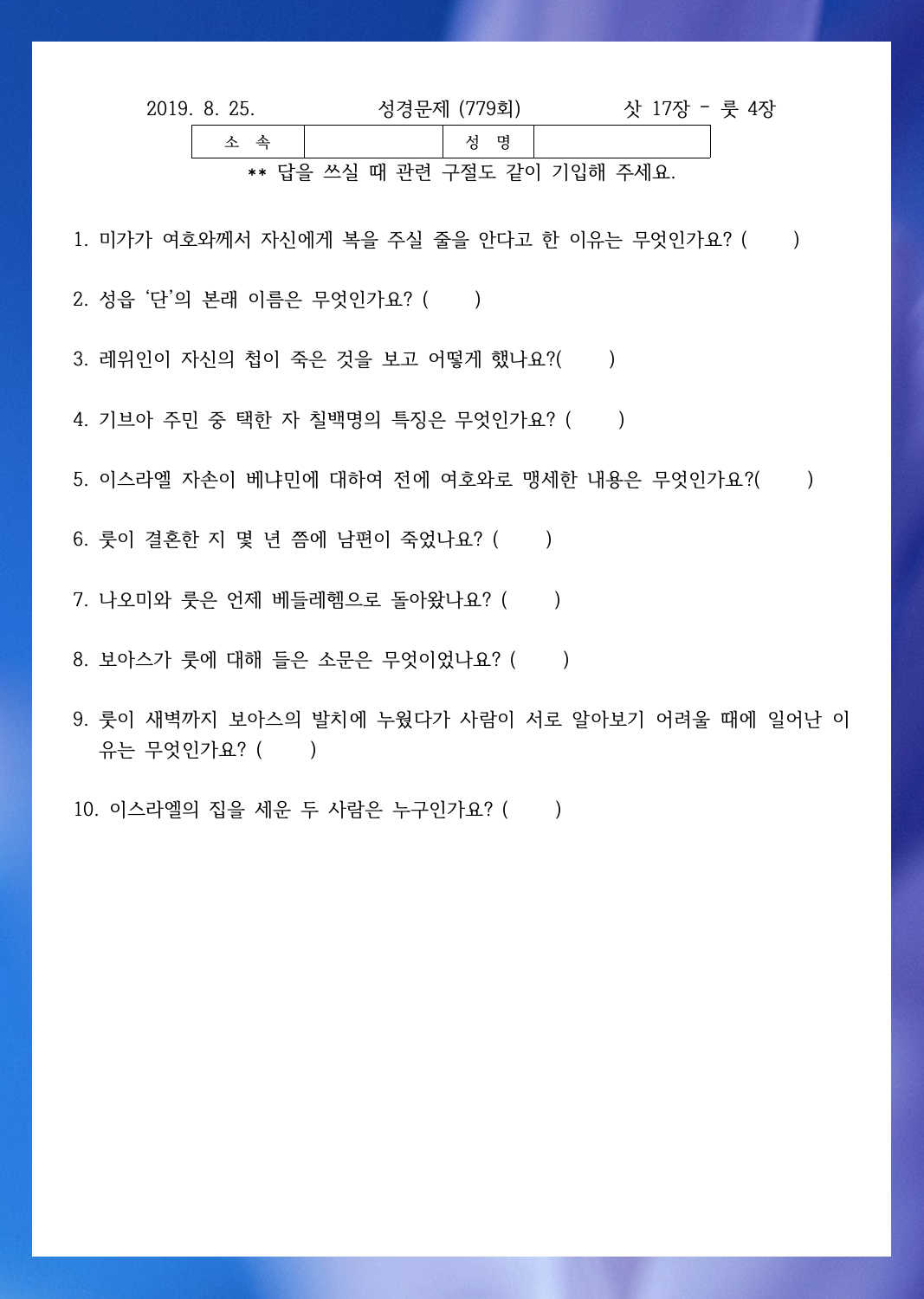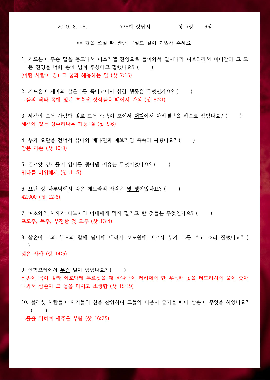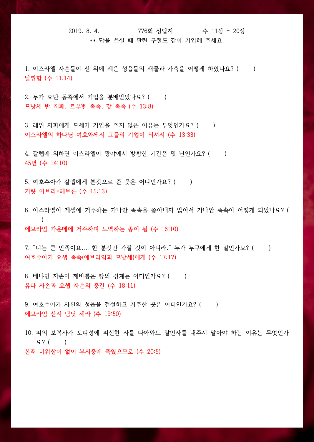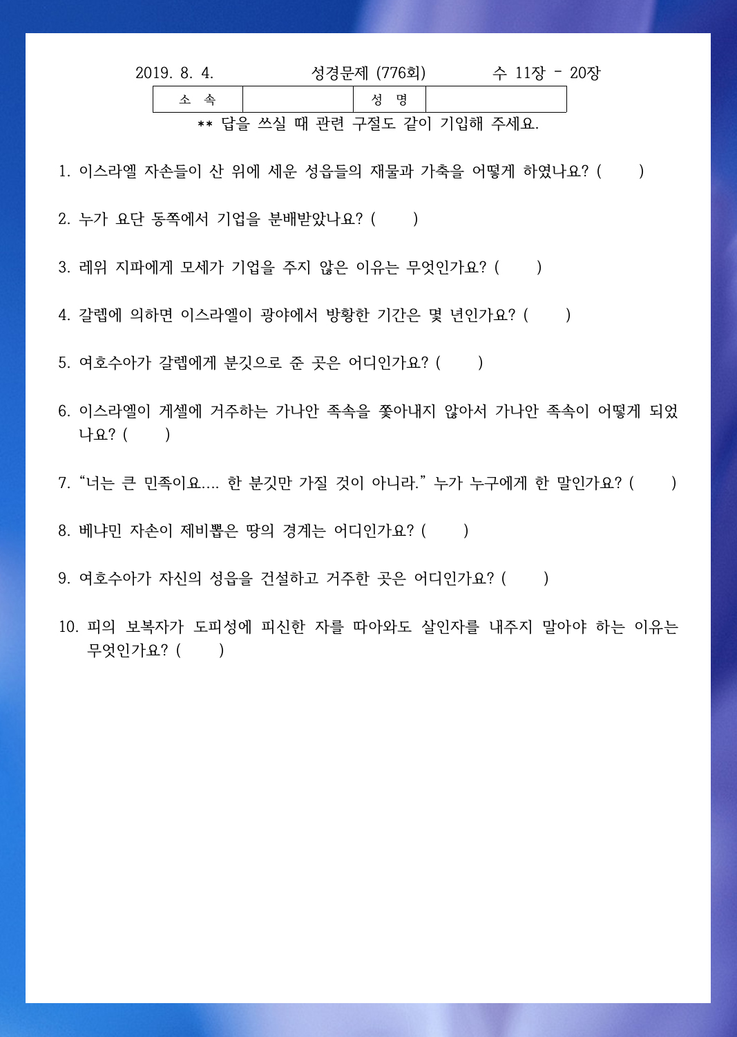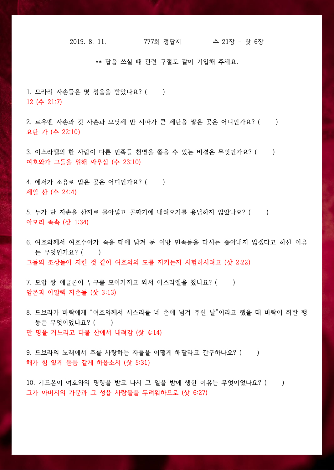 ¼º°æ¹®Á¦ 777ȸ(8¿ù 11ÀÏ)