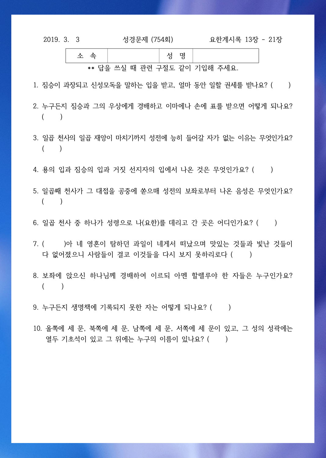¼º°æ¹®Á¦ 755ȸ(3¿ù 10ÀÏ)