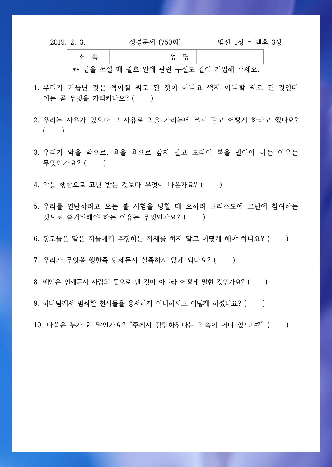¼º°æ¹®Á¦750ȸ(2¿ù 3ÀÏ)