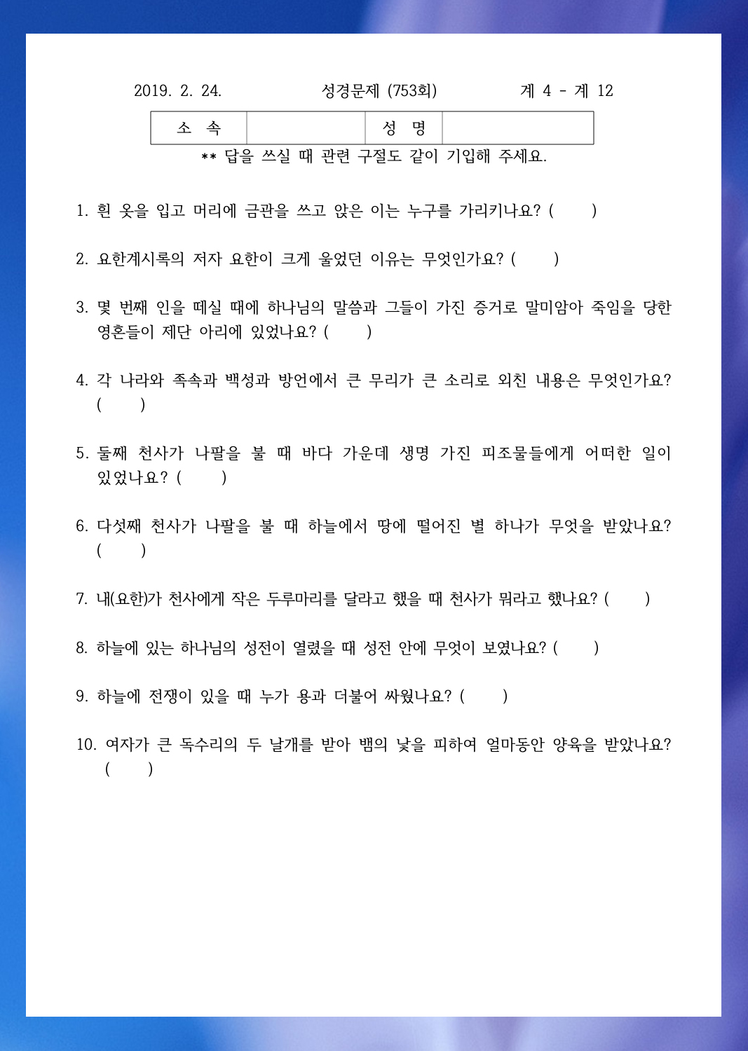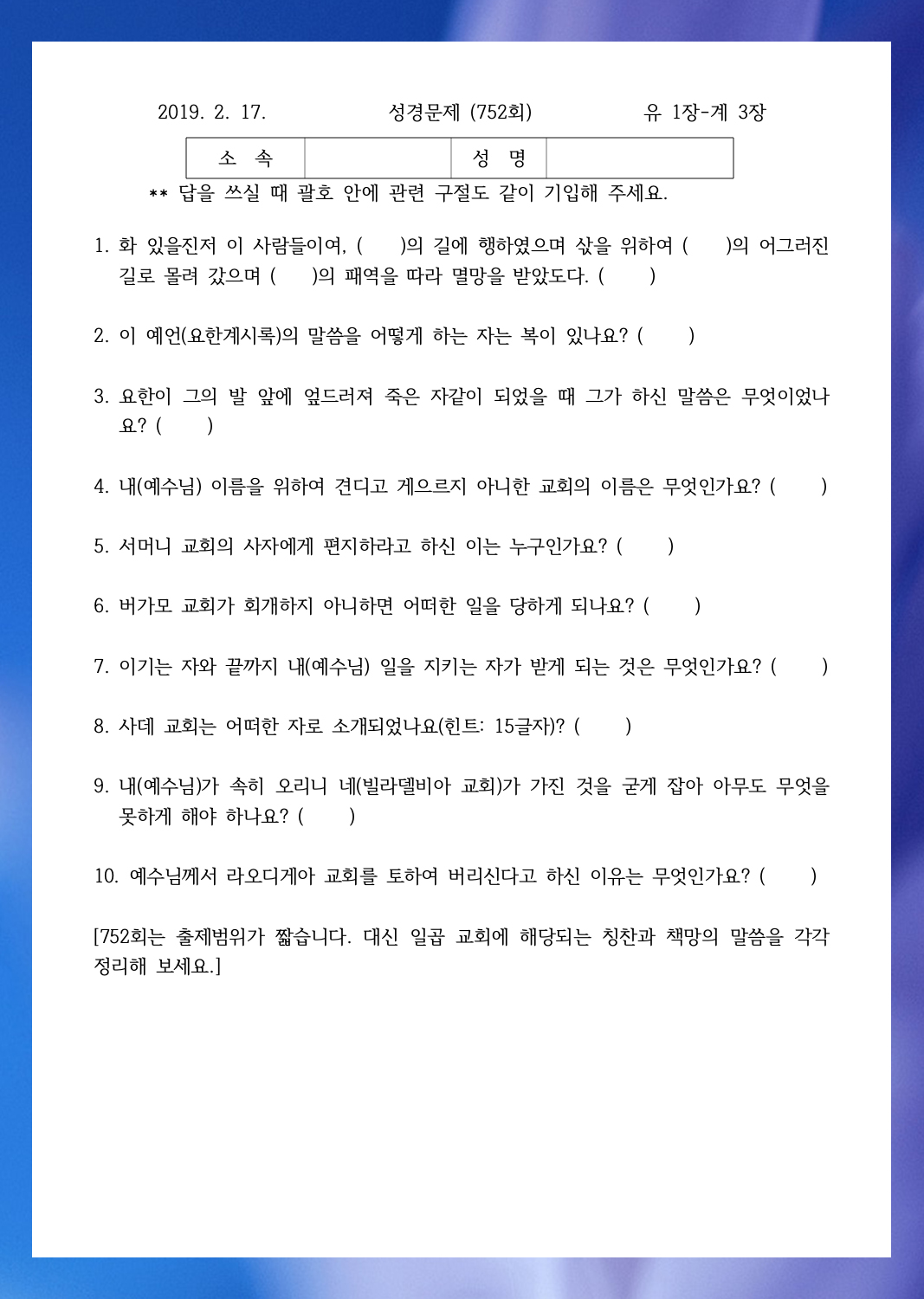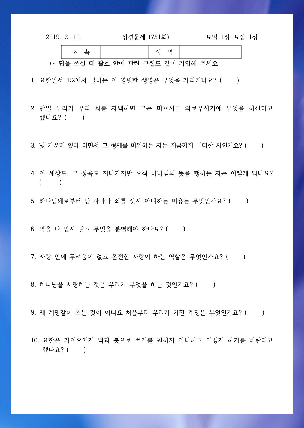 ¼º°æ¹®Á¦ 751ȸ(2¿ù 10ÀÏ)