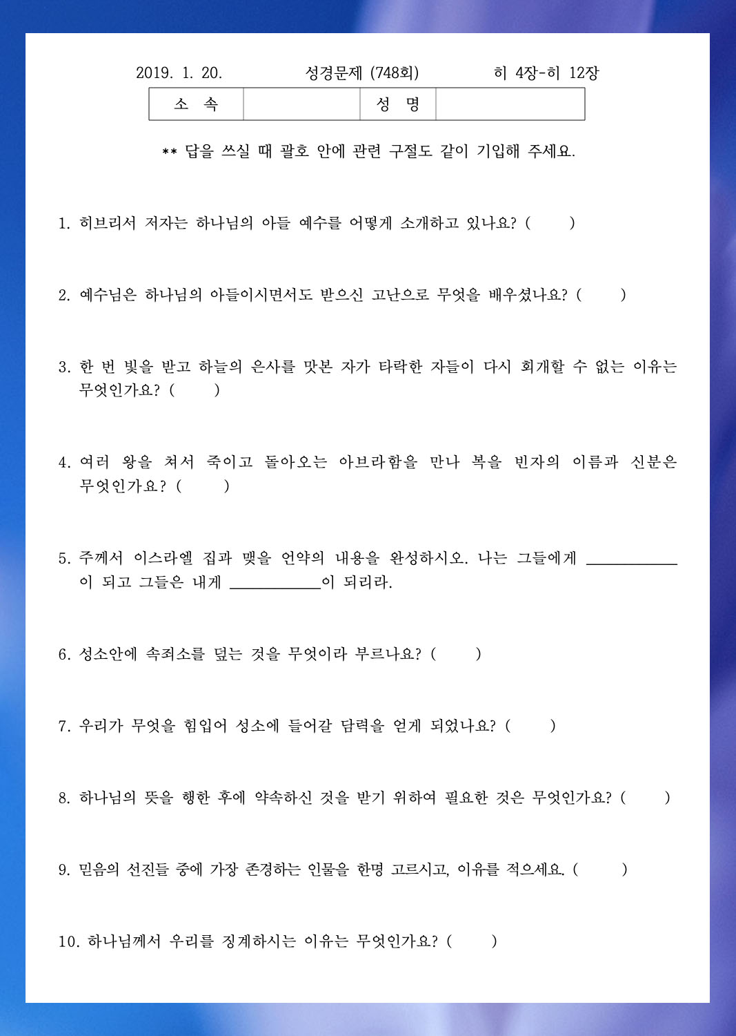 ¼º°æ¹®Á¦ 748ȸ(1¿ù 20ÀÏ)