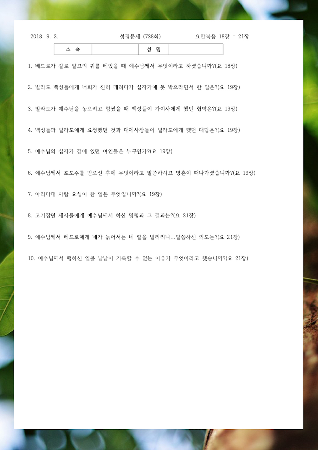 ¼º°æ¹®Á¦ 728ȸ(9¿ù 2ÀÏ)