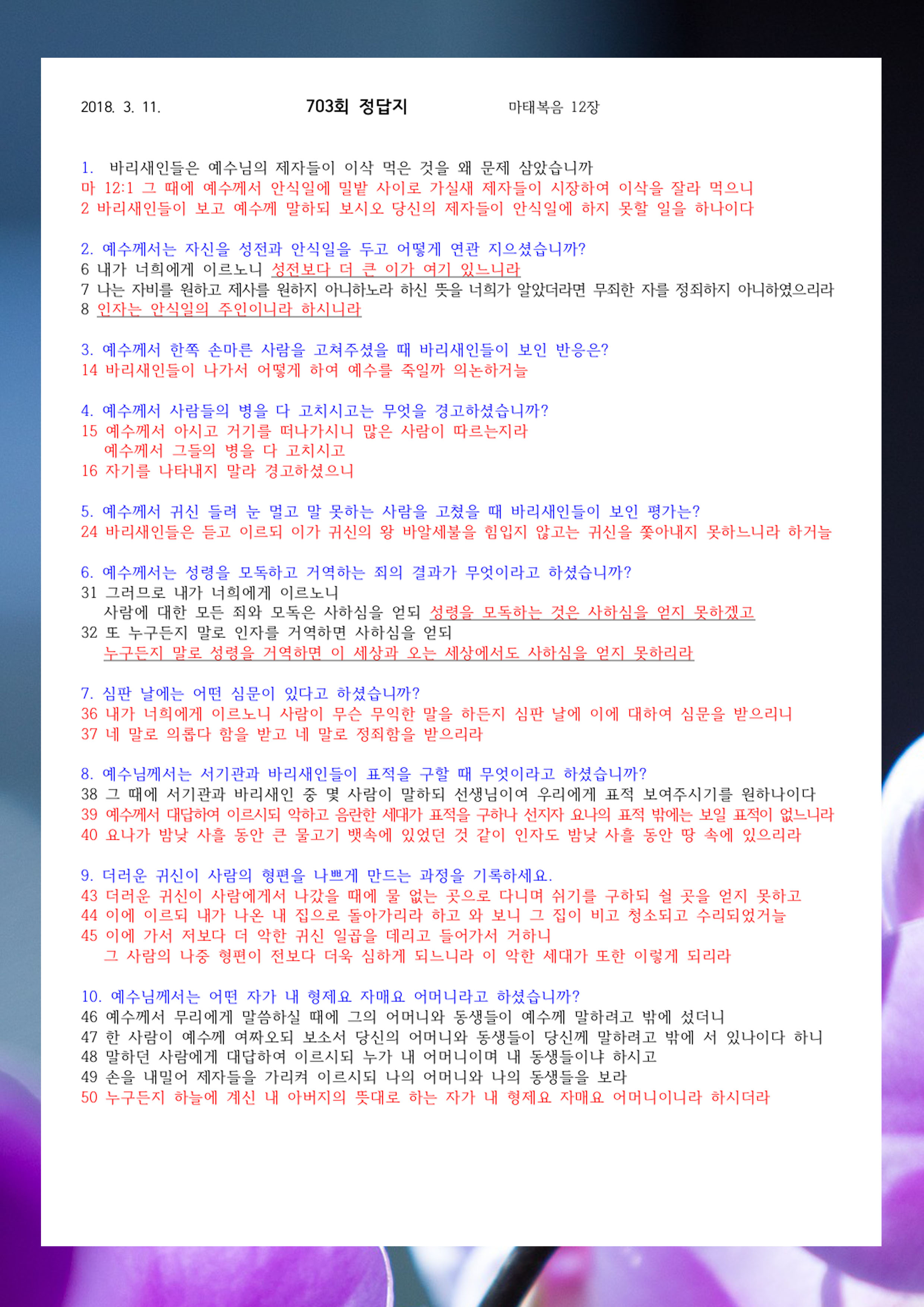 ¼º°æ¹®Á¦ 703ȸ(3¿ù 11ÀÏ)