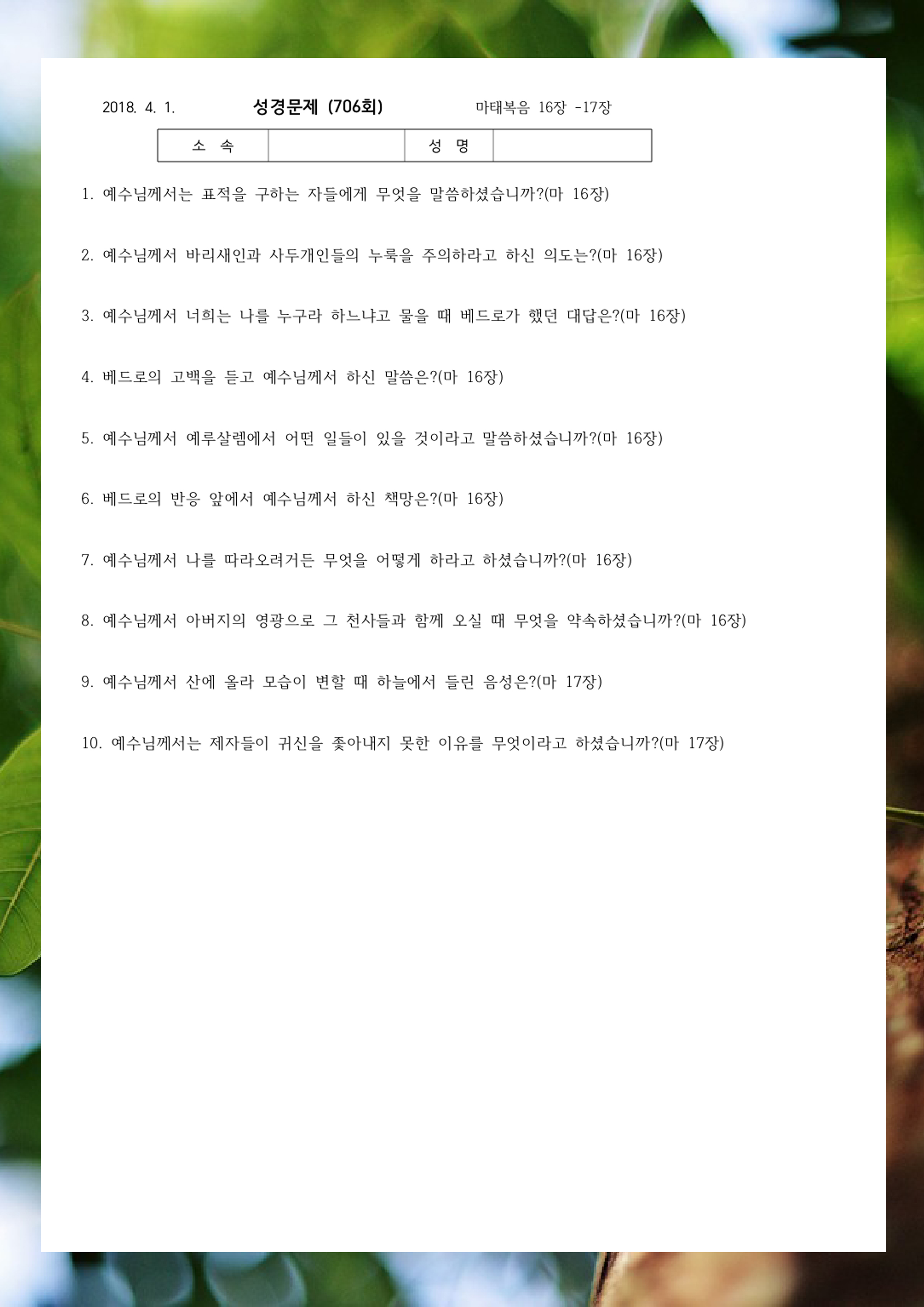 ¼º°æ¹®Á¦ 706ȸ(4¿ù 1ÀÏ)