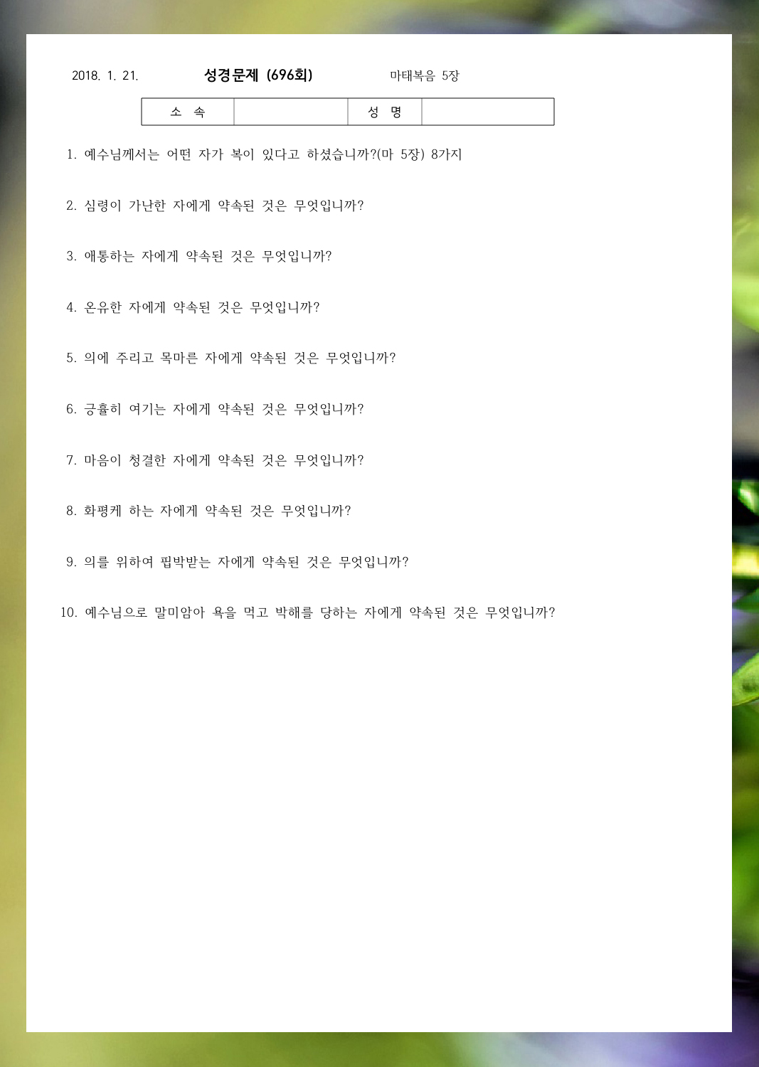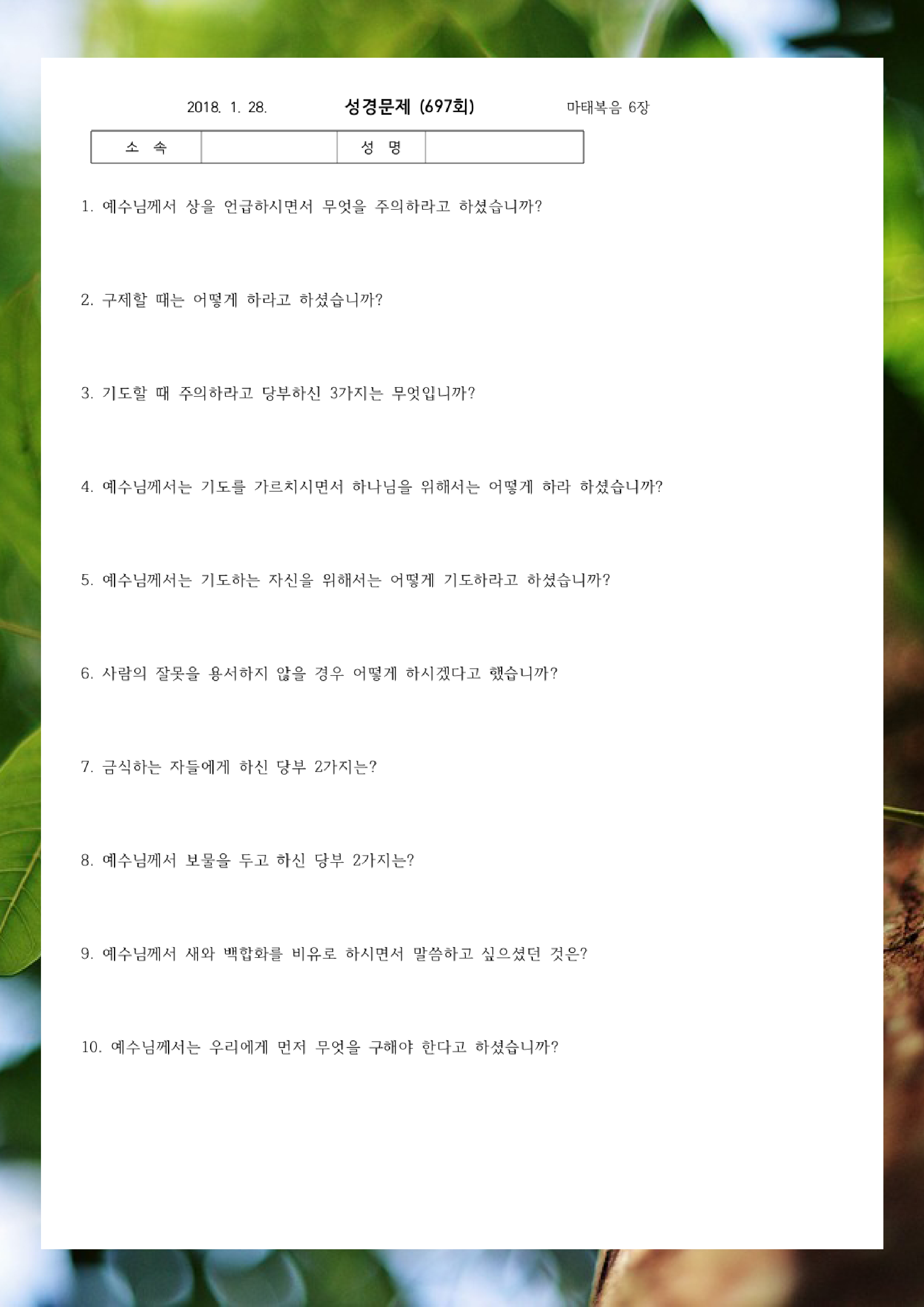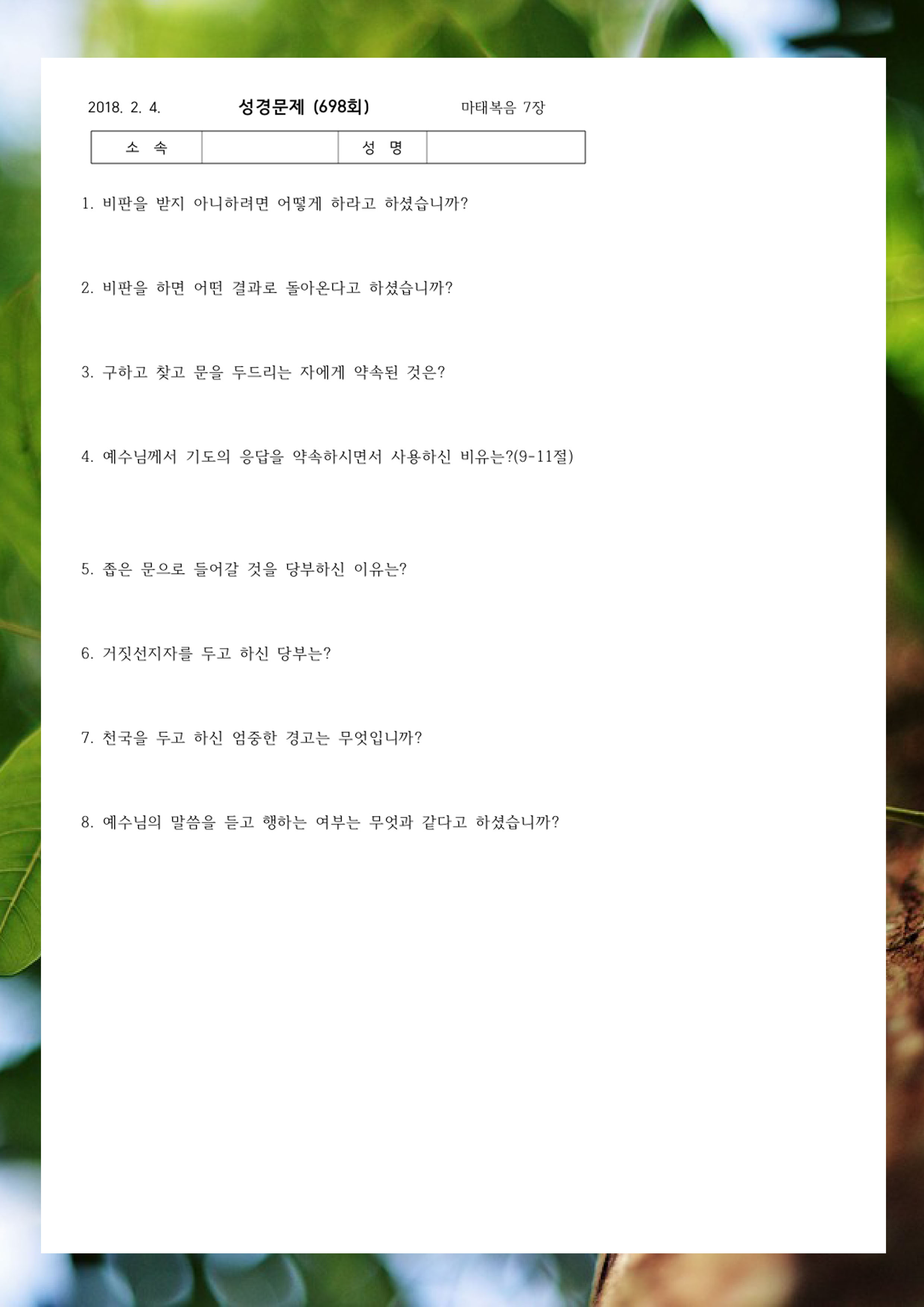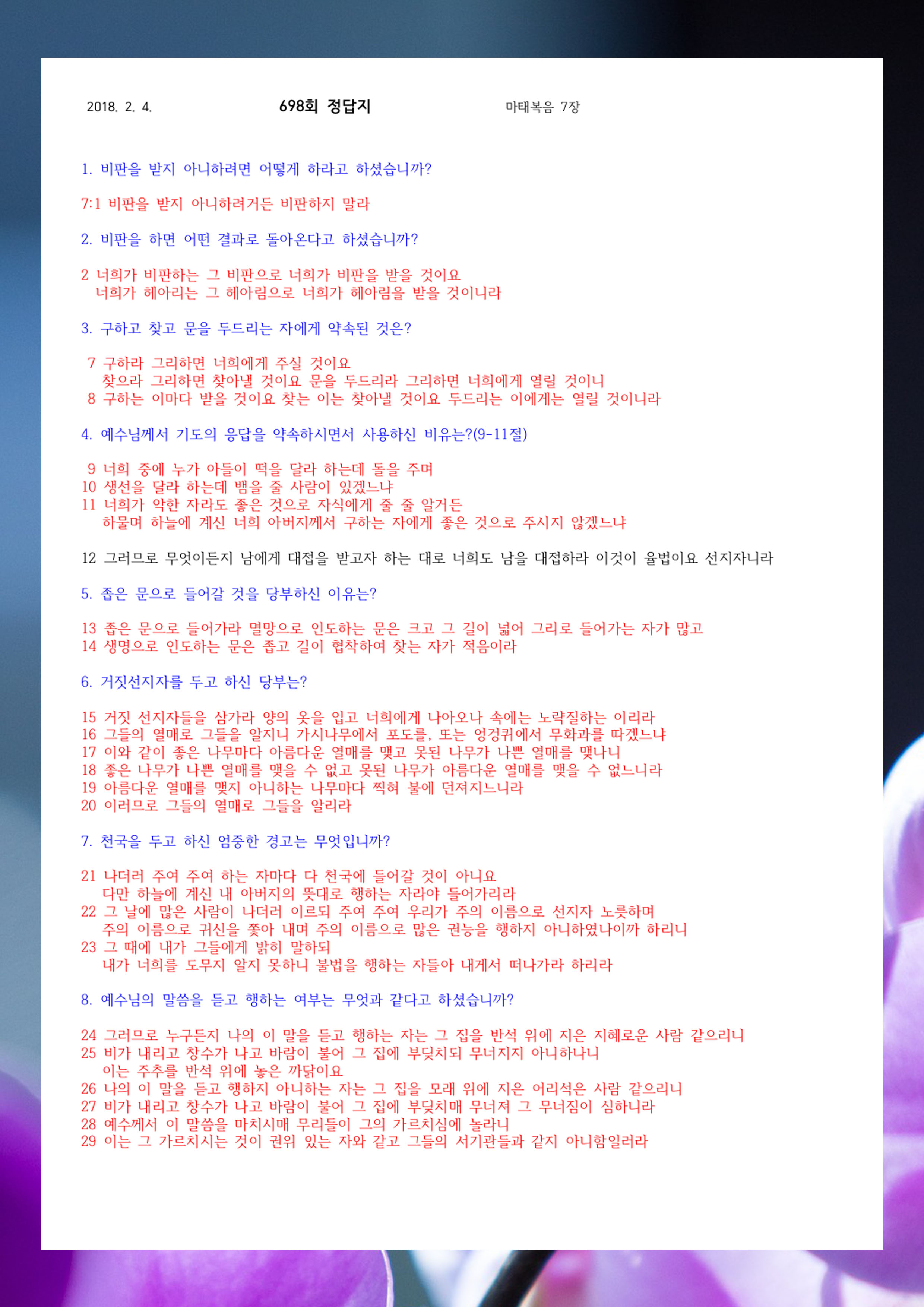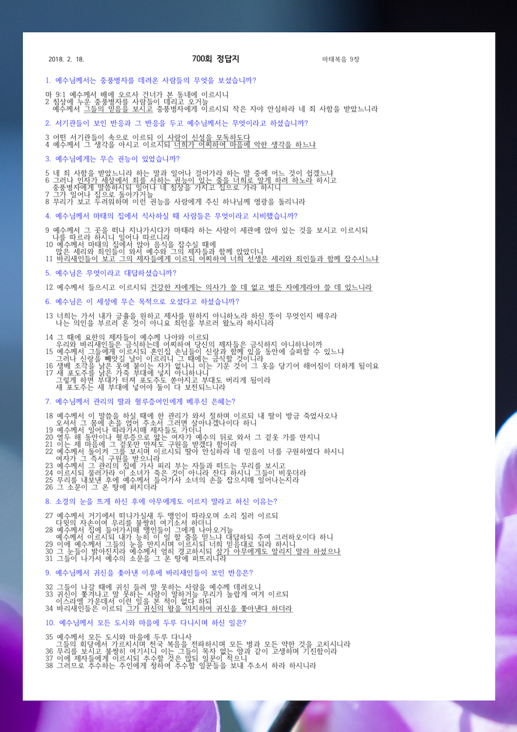 ¼º°æ¹®Á¦ 700ȸ(2¿ù 18ÀÏ)