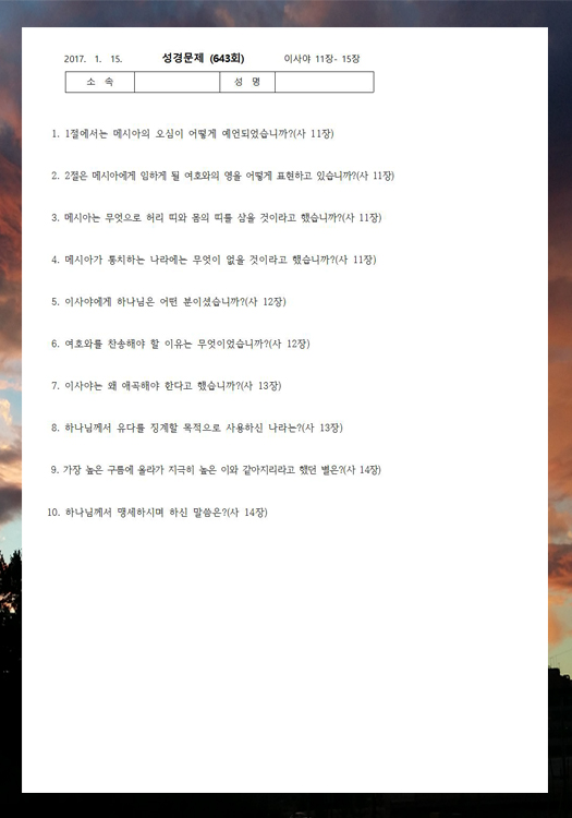 ¼º°æ¹®Á¦ 643ȸ (1¿ù 15ÀÏ)