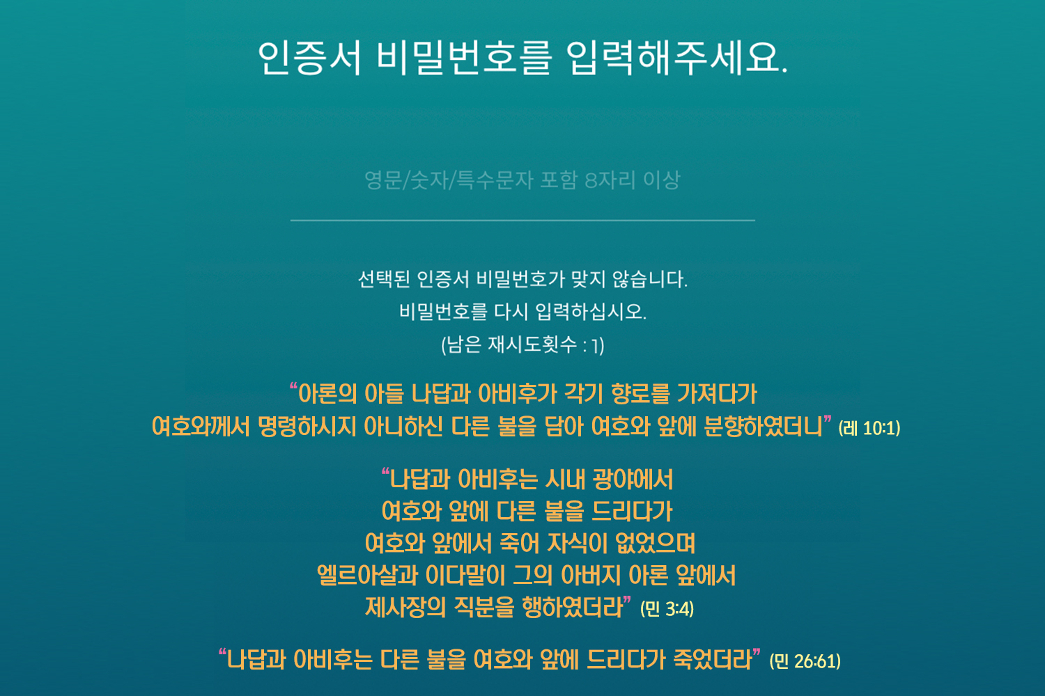 "¾î¶»°Ô ÀÎÁõ¼ ºñ¹Ð¹øÈ£¸¦ 5¹øÀ̳ª Ʋ¸®Áö?"ÀÚÁÖ »ç¿ëÇÏ´Â ºñ¹Ð¹øÈ£¸¦ ´Ù¸£°Ô ÀÔ·ÂÇß´Ù´Â °ÍÀÌ ¹Ï¾îÁöÁö°¡ ¾Ê¾Ò½À´Ï´Ù. À̰ͺ¸´Ù ´õ ³î¶ó¿î ÀÏÀº '´ëÁ¦»çÀå..